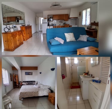 Nous vous accueillons, au rez-de-chaussée de notre villa de 2 étages, votre logement, un T2 d'environ 50 m2 avec sa terrasse 40 m2 orientée sud.