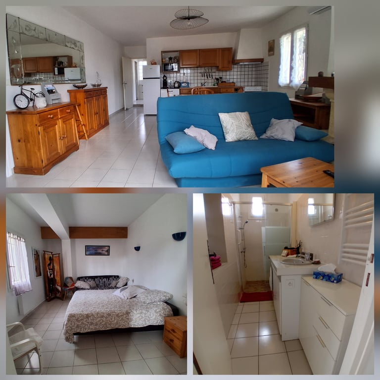 1 pièce à vivre ouverte sur cuisine table et chaises, clic clac pouvant servir de couchage , tv, wifi fibre, enceinte connectée, radio-cd,