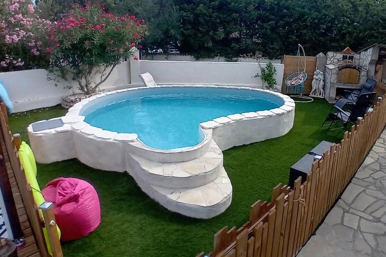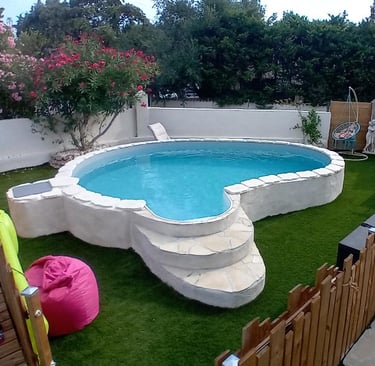 Piscine 5 x 3 semi enterré 1, 20 m profondeur... serviette fournie ...