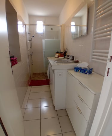 Accès direct sur la terrasse depuis la pièce de vie (présence de marches d'escalier) Tout est mis à votre disposition pour votre meilleur confort....