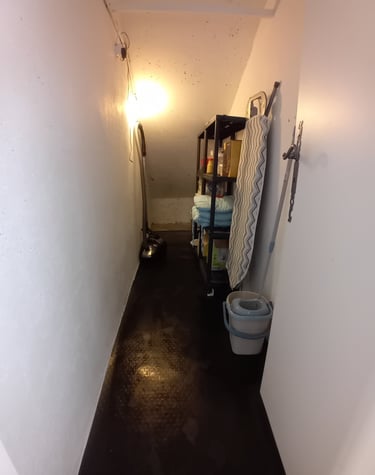 Un local est à votre disposition pour vos rangements, vous y trouverez aussi, balai, seau de lavage, aspirateur, planche à repasser, fer à repasser, étendoir .....